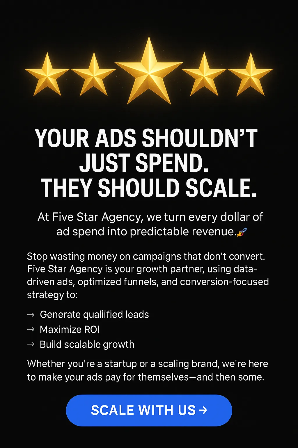 “Growth happens when you treat ad spend as fuel, not risk.” — Five Star Agency